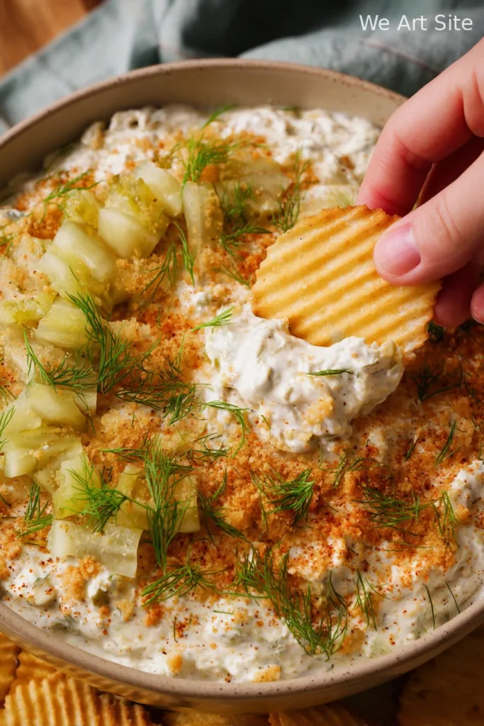- Dry pickles thoroughly with a paper towel before chopping to keep the dip creamy, not watery.