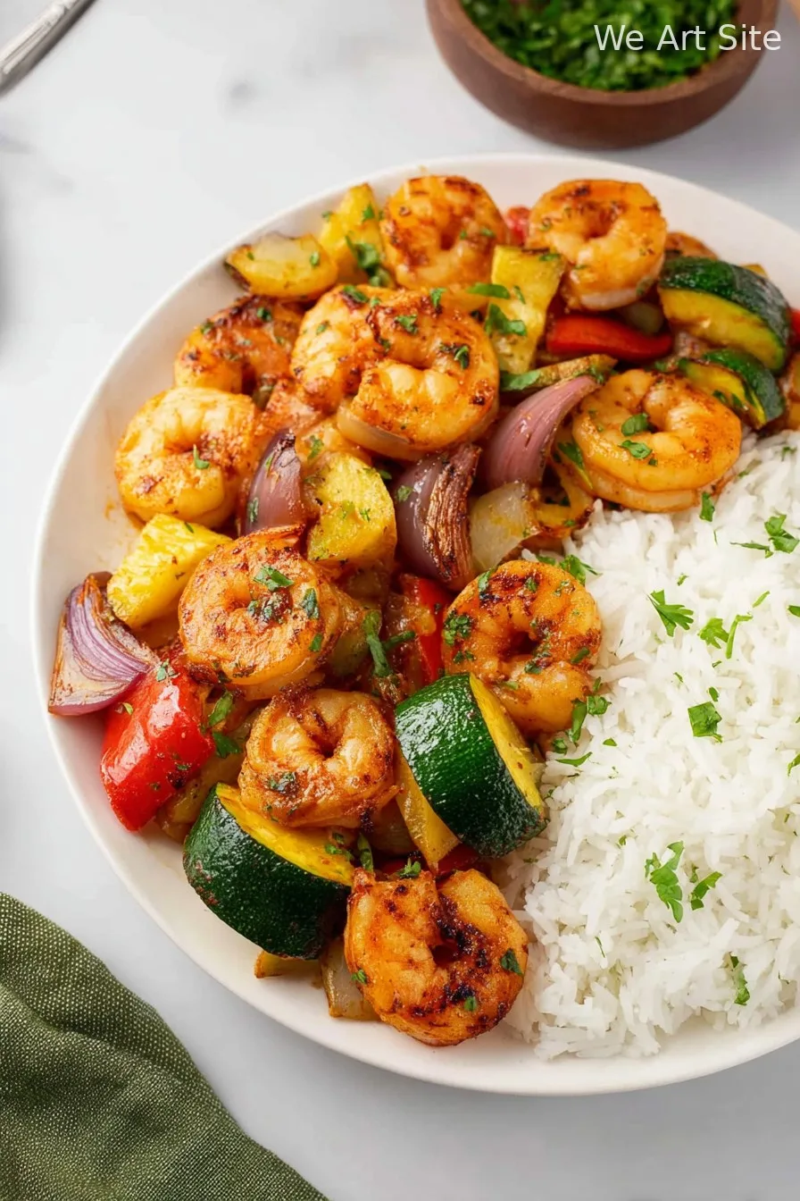 I make this skillet when there’s leftover veggies kicking around or when I don’t want to do a mountain of dishes (which is, let’s face it, always). My family goes crazy for this. I once tried to sneak in cauliflower instead of peppers—got caught, still worth it. Oh, and if you’re the type who hates peeling shrimp, I get it. I usually buy them already peeled and deveined unless I’m feeling virtuous (which is… rare).